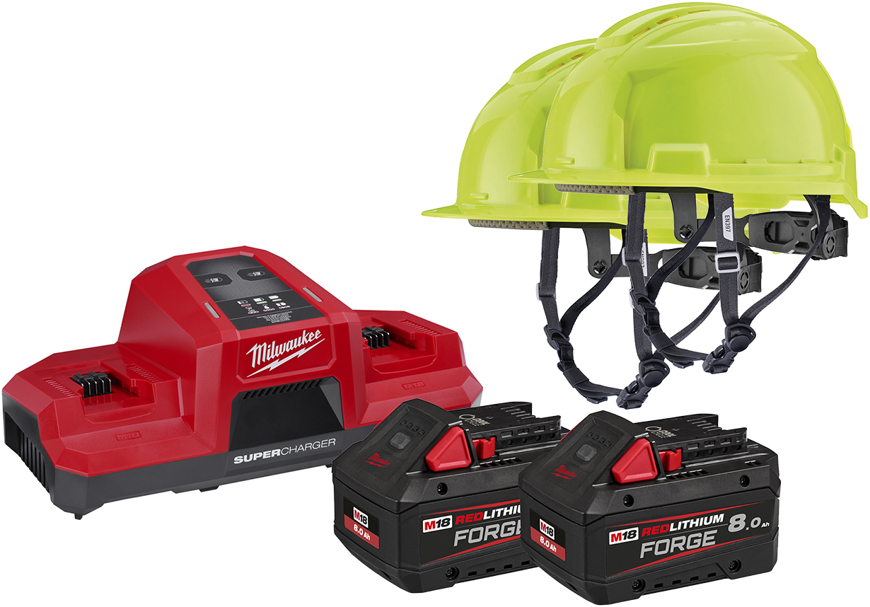BOLT 100 sikkerhedshjelm i hi-vis gul med ventileret ABS-skal, 6-punkts affjedring, hjulspænde og størrelsesjustering fra 52-68 cm. Hjelmen er certificeret efter EN 3...